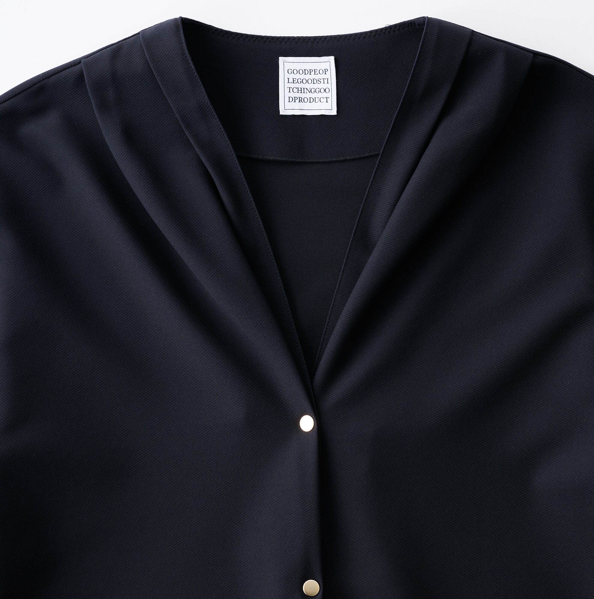 The no-collar design with tucks and minimal dot buttons gives a clean overall impression. This easy shirt jacket, which can be worn casually like a shirt, can also be paired with the 02-01-1871 Drawstring Easy Wide Pants as a set.