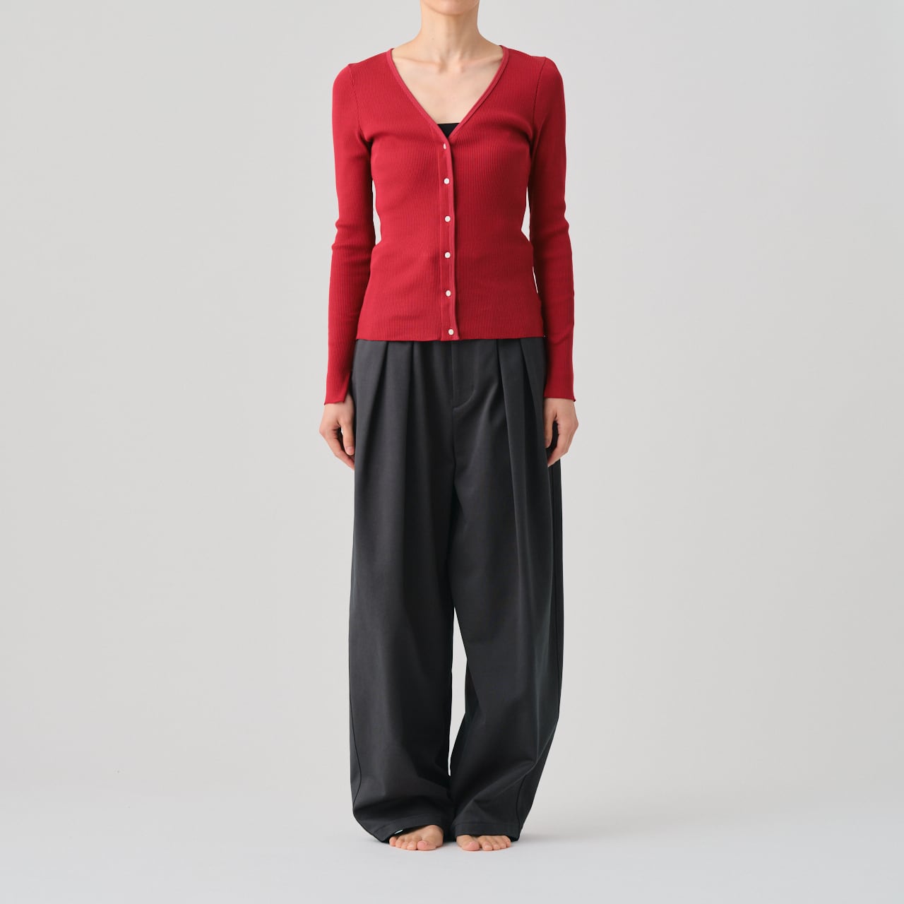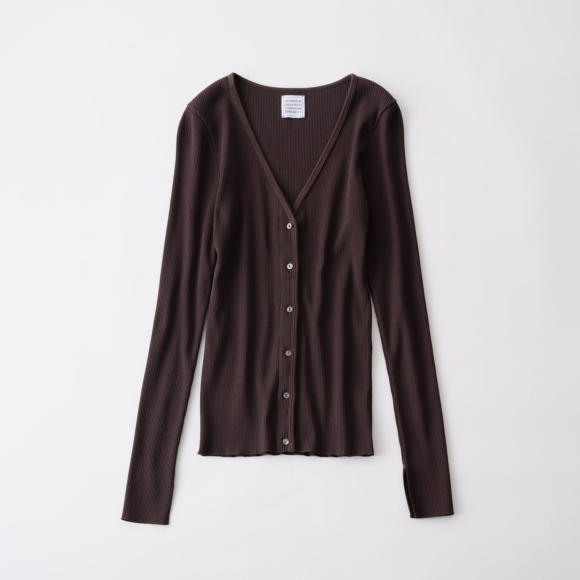 目の立った美しいリブが特徴の、Vネックロングスリーブカーディガン。