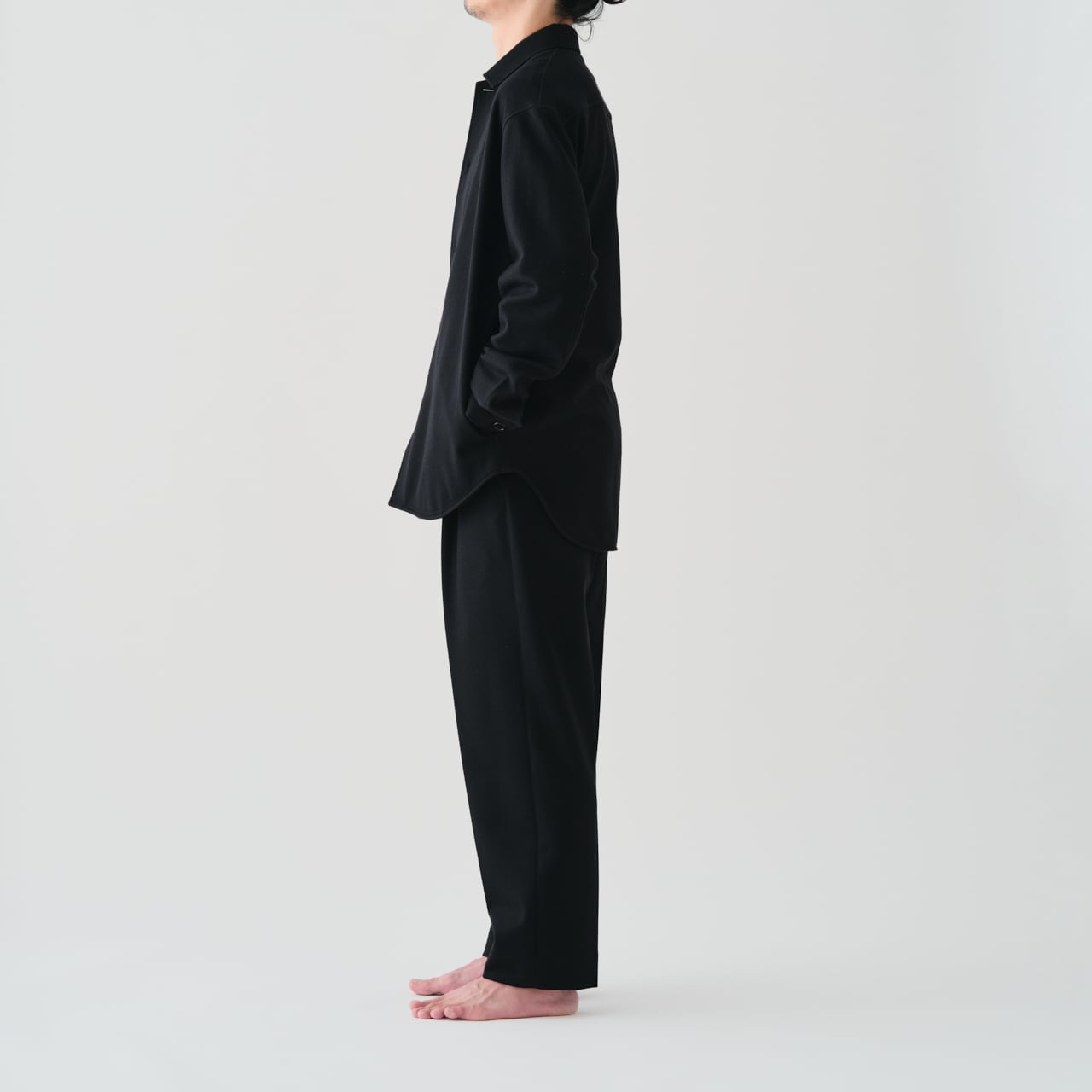 Balancircular® is a rare knitting machine unique to Japan, of which there are only a few, and it is a fabric that looks like a woven fabric even though it is made of jersey. While maintaining the elasticity characteristic of jersey, it does not lose its shape or wrinkle easily.