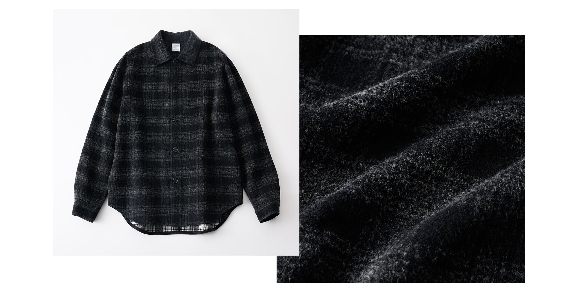 ニードルパンチ生地を使用した、オーバーシャツ。